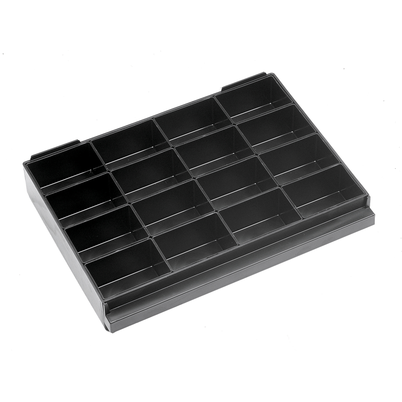 ESD A75 insert. Half-height insert - 5 small compartments. Can be used to sub-divide 250-3 drawer and ESD Assorter 4x8-0.