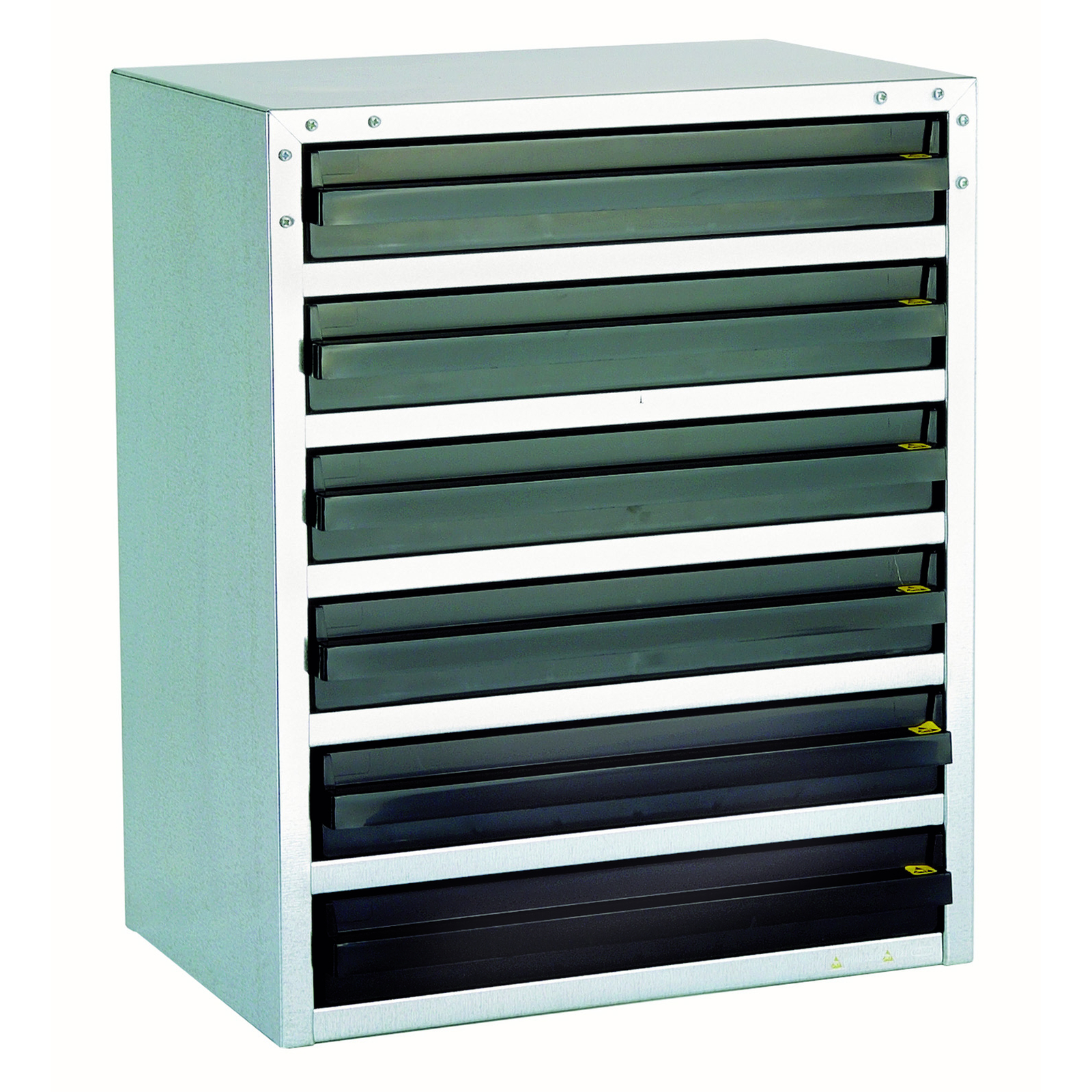 - Made of galvanized steel and drawers of ESD polypropylene (PP)