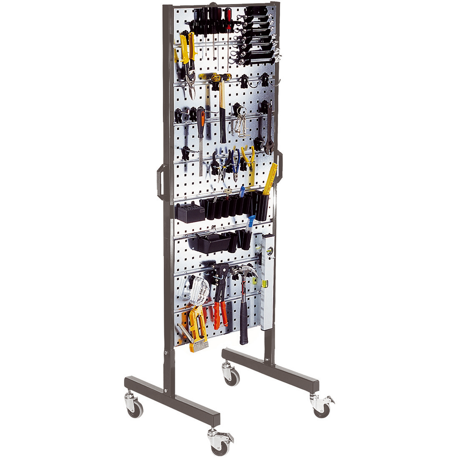 Dobbeltstativ med 6 hulplader til Super Clip. Hjul og håndtag kan monteres (ekstra tilbehør).