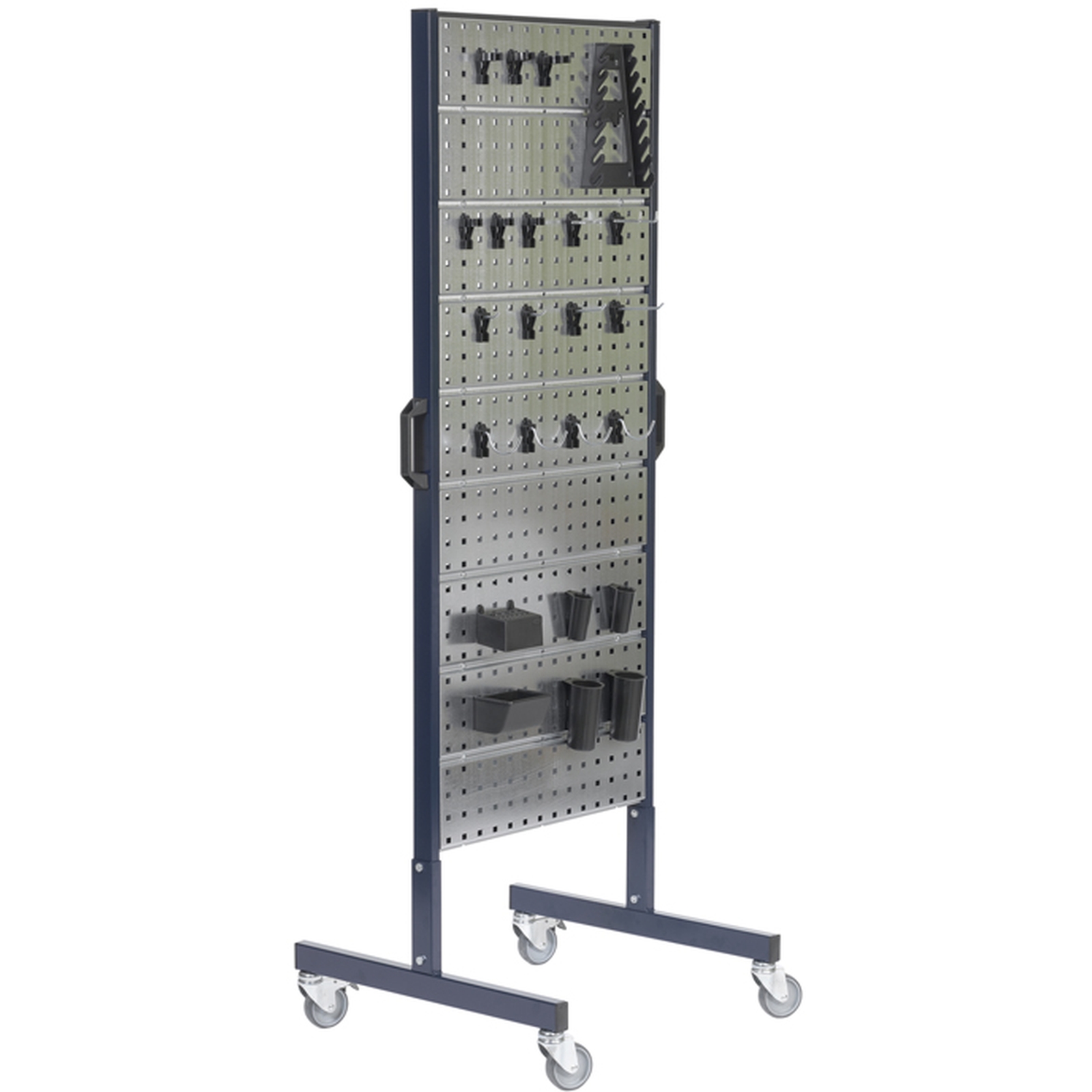 2. Die Clipse können ohne den Einsatz von Werkzeugen - nur durch einfaches Drücken – überall im Lochblech befestigt und ebenso leicht erneut versetzt werden.
