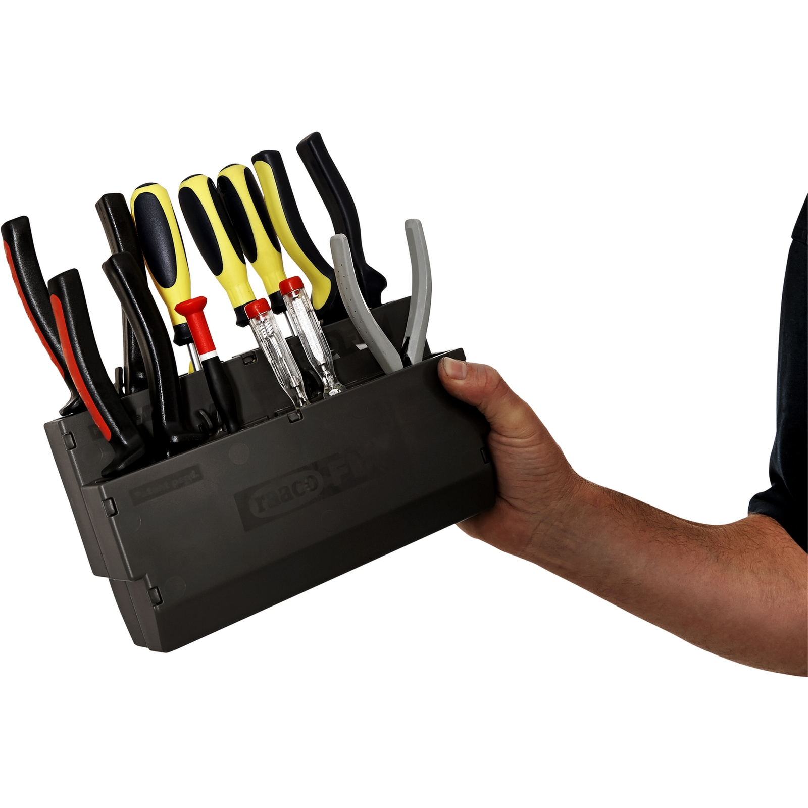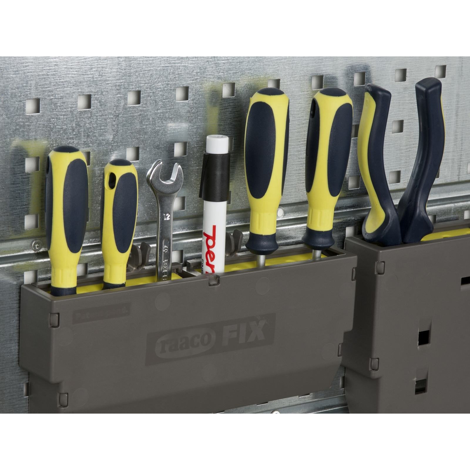 raacoFIX Werkzeugaufnahme mit Platz für 6 grössere Werkzeuge. Kann auf einem Werkzeug-Wandpaneel montiert werden. Kein Werkzeug im Lieferumfang enthalten.