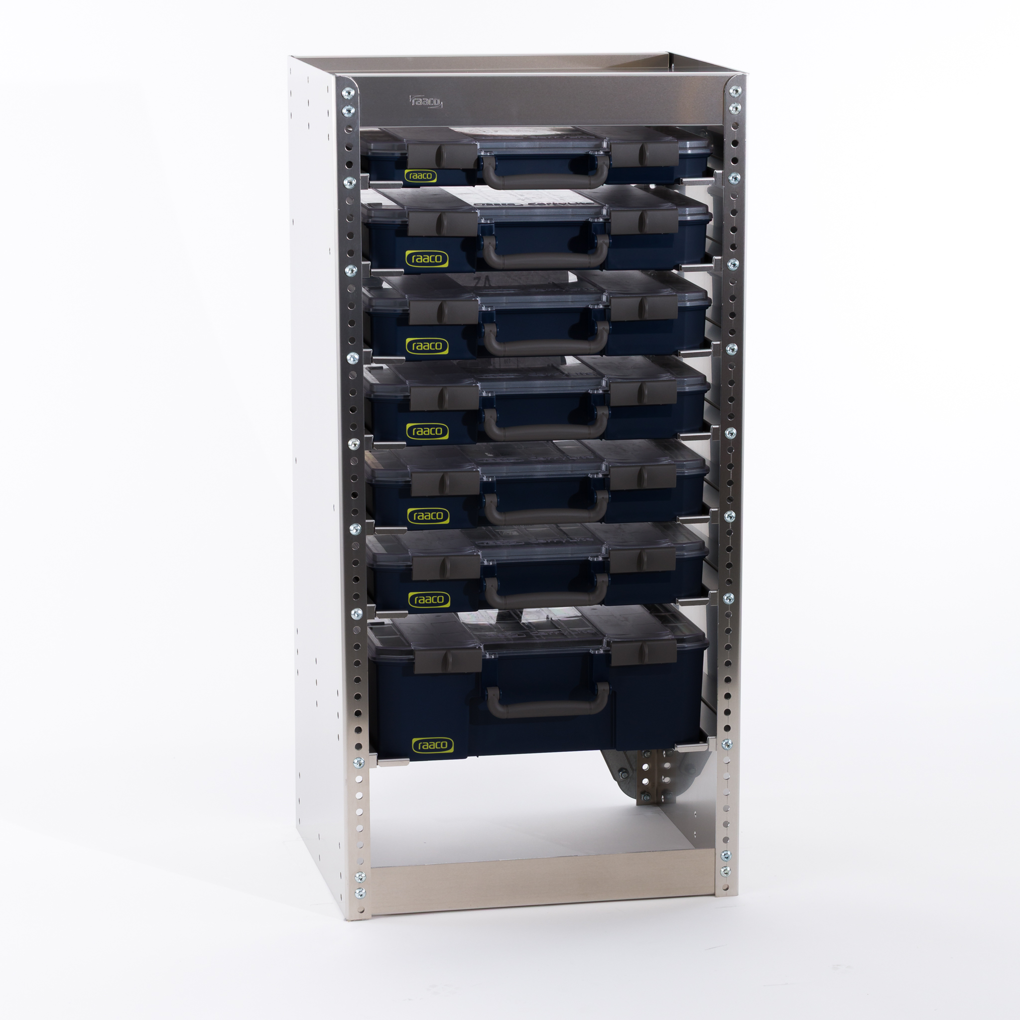 2. CarryLite Regal. Für das Fahrzeug oder die Werkstatt, damit Sie bei Bedarf hier noch mehr CarryLite Koffer zusammenfassen können.