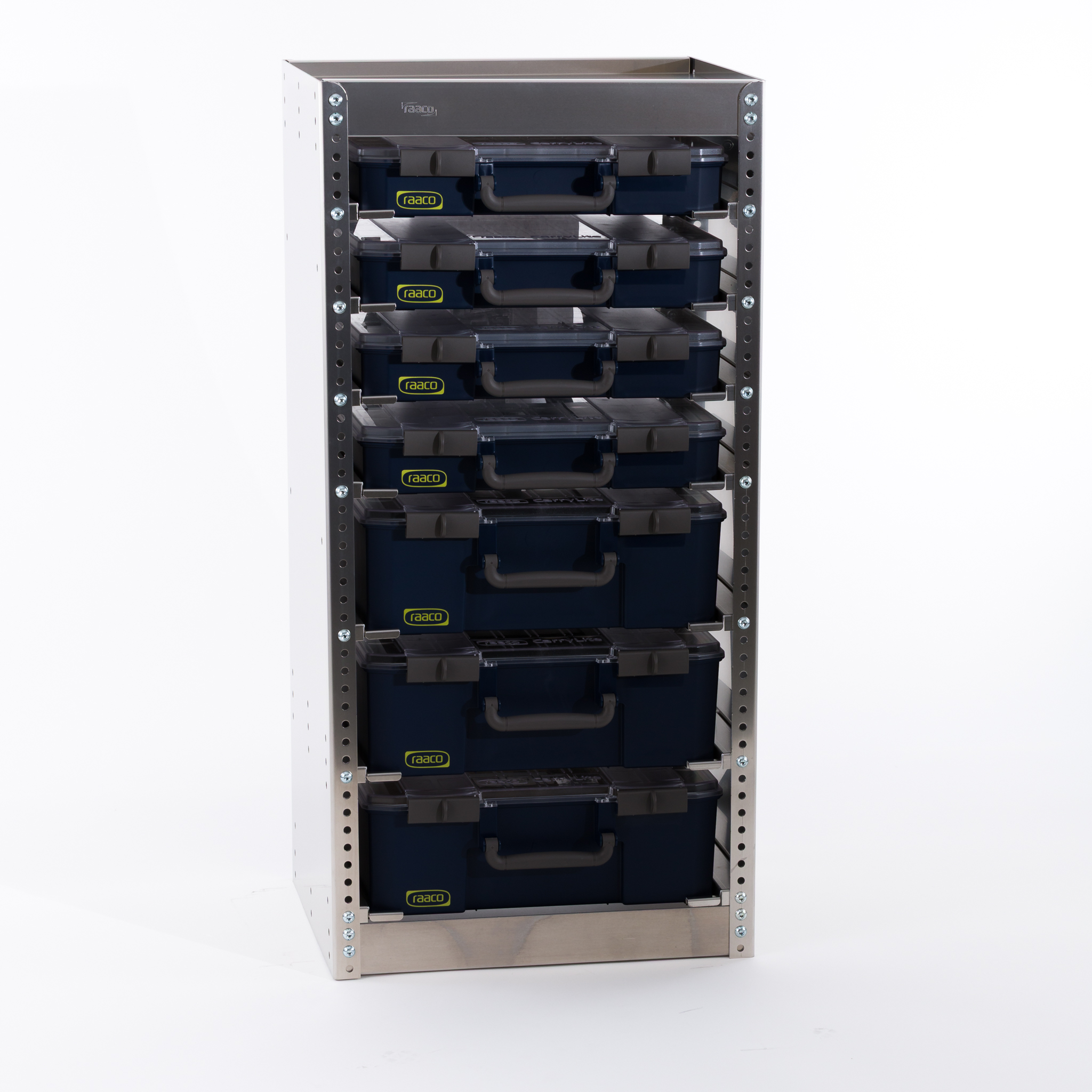 2. CarryLite Regal. Für das Fahrzeug oder die Werkstatt, damit Sie bei Bedarf hier noch mehr CarryLite Koffer zusammenfassen können.