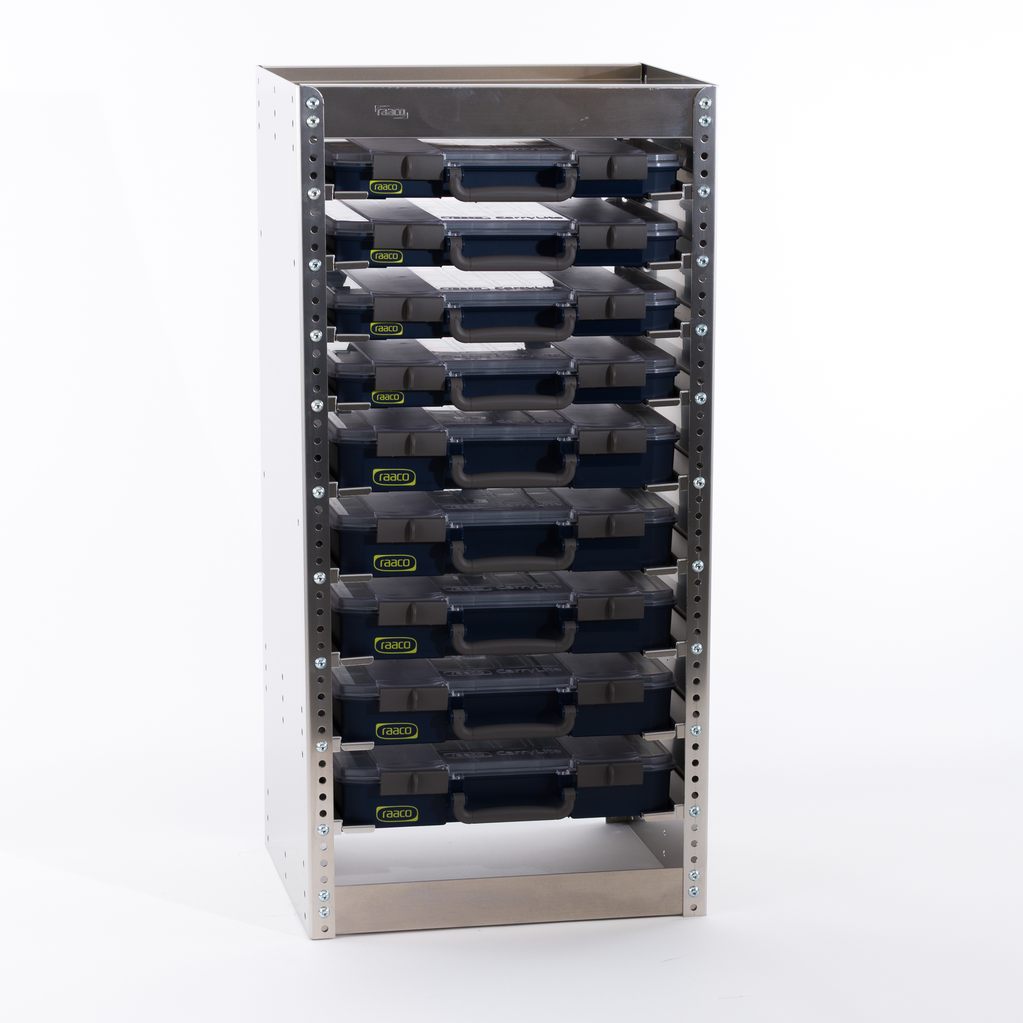 2. CarryLite Regal. Für das Fahrzeug oder die Werkstatt, damit Sie bei Bedarf hier noch mehr CarryLite Koffer zusammenfassen können.