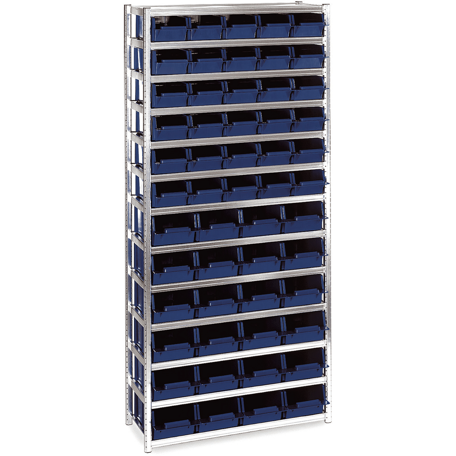Schubladenregal bestehend aus 13 Stück Regalböden 90-31, 8 Stück Steckpfosten, 30 Stück Regalschubladen 5-600 sowie 24 Stück 6-1100.