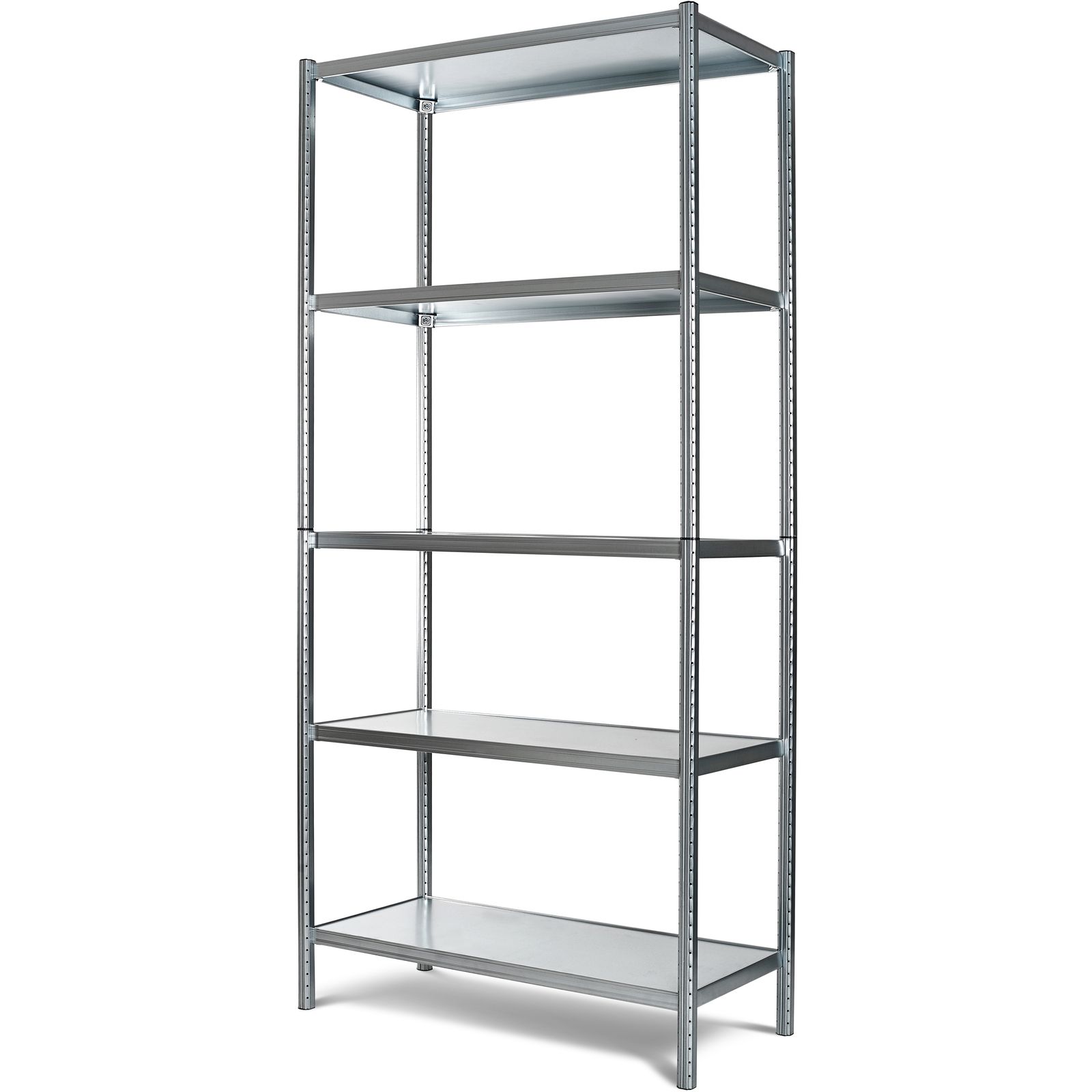 Werkstattregal mit 5 Böden und 8 Steckpfosten (à 1 m) - Regaltiefe 31 cm. Traglast pro Regalboden 100 kg. Leichte Montage.