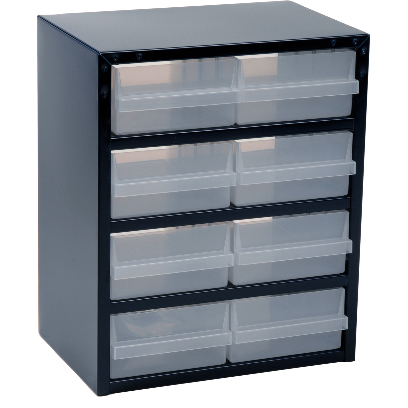 1. Aus lackiertem Stahl, wobei die Schubladen in strapazierfähigem Klarsicht-Kunststoff (PP) ausgeführt sind, damit sich die Identifizierung des Inhalts leicht gestaltet.