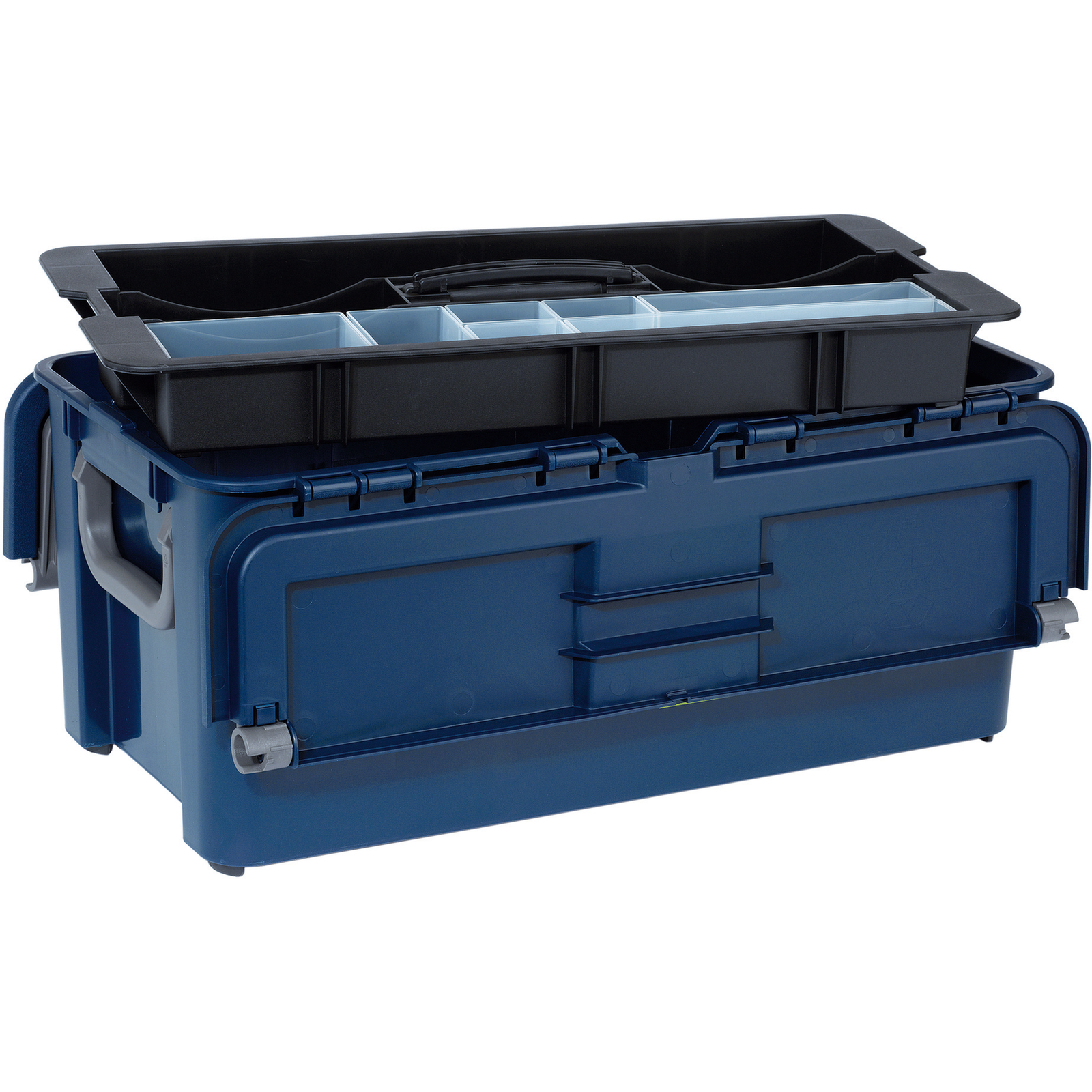 5. Herausnehmbare Träger. Mit festen Trennwänden für Kleinteile und kleineres Werkzeug. In die Schale passen auch die versetzbaren Einsätze aus den Sortimentskästen.