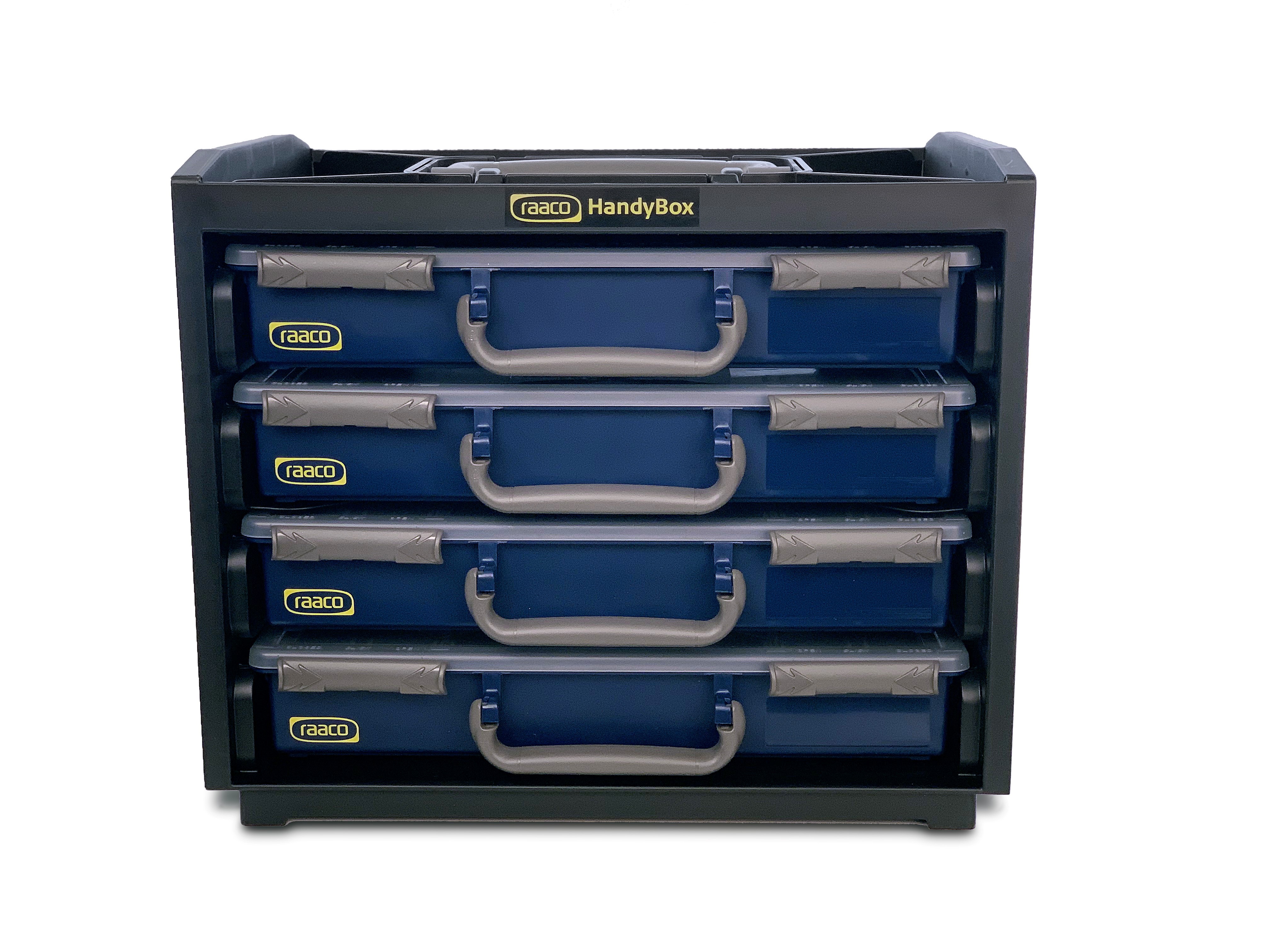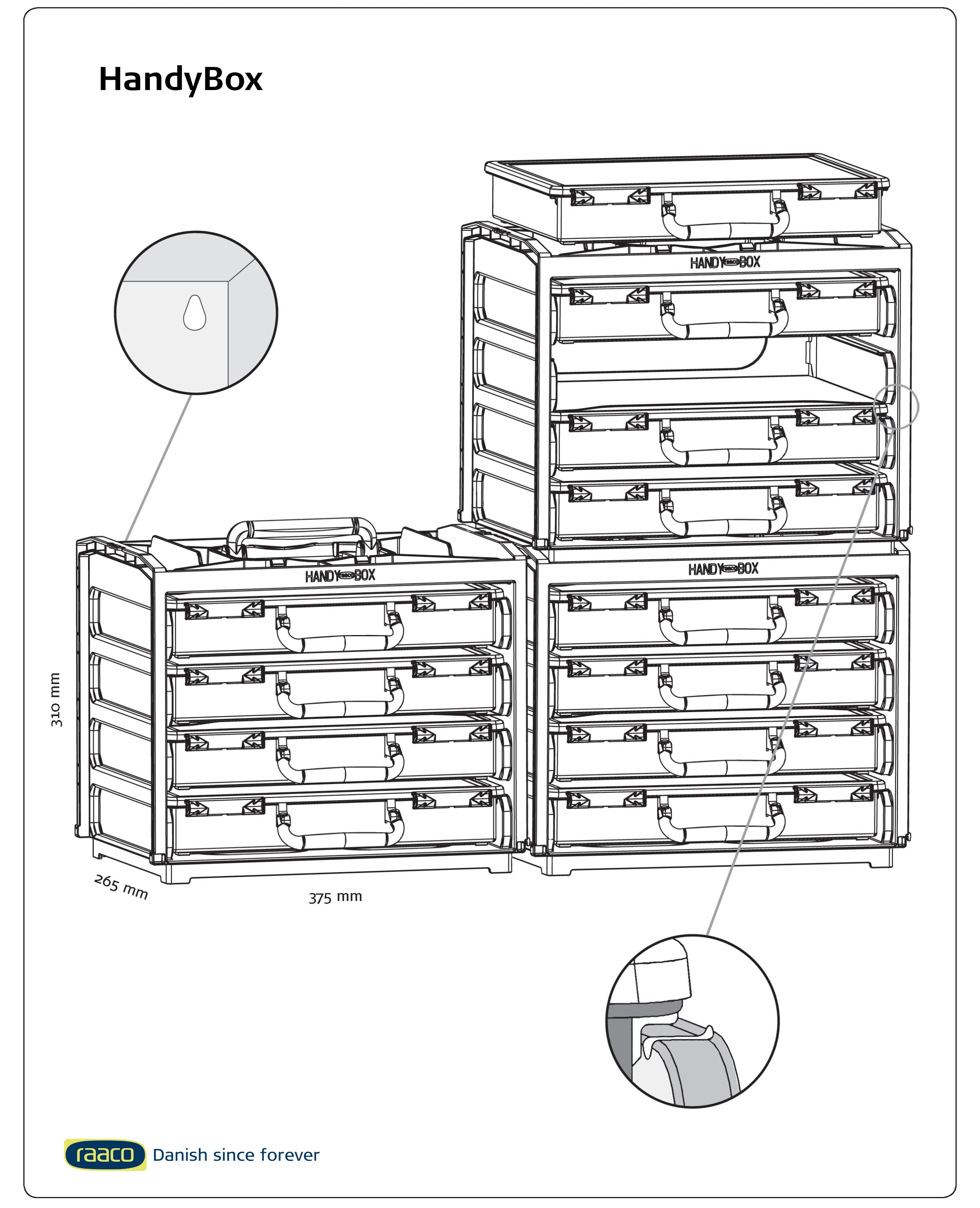 8. Système HandyBox pour le transport. Peut accueillir 4 mallettes Assorter. Pour un transport groupé et simple avec une seule main.