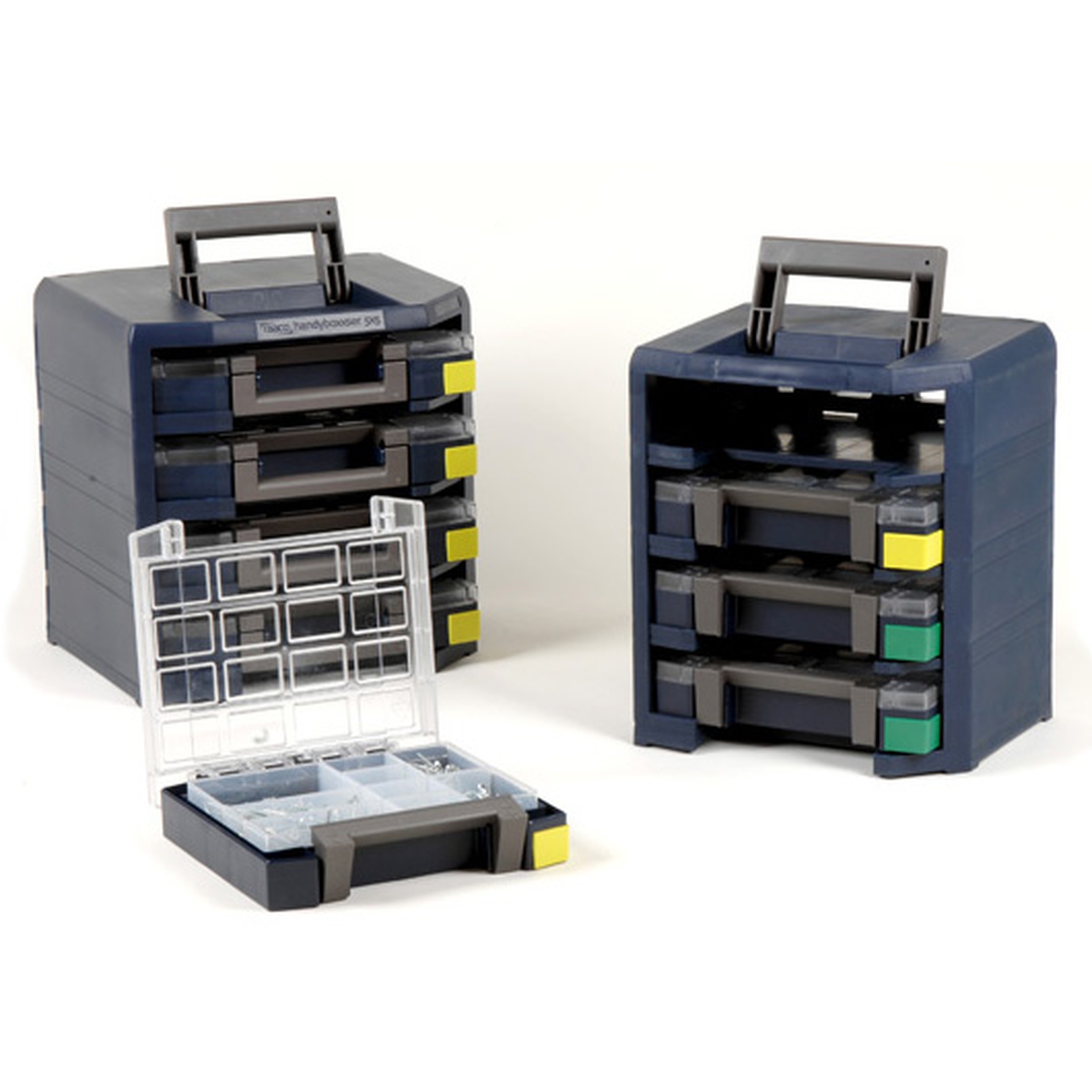 7. HandyBoxxser. Pour le stockage de 4 mallettes Boxxser et un accès facile au contenu. Peut-être transporté, empilé et suspendu au mur.