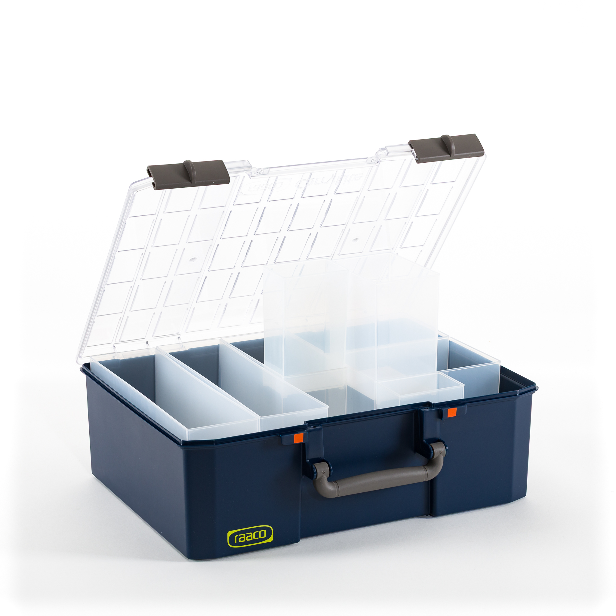 6. CarryLite 150, avec une hauteur supplémentaire. Vendue avec des séparateurs amovibles de trois dimensions différentes. Possibilité de séparer la mallette en 9 espaces.