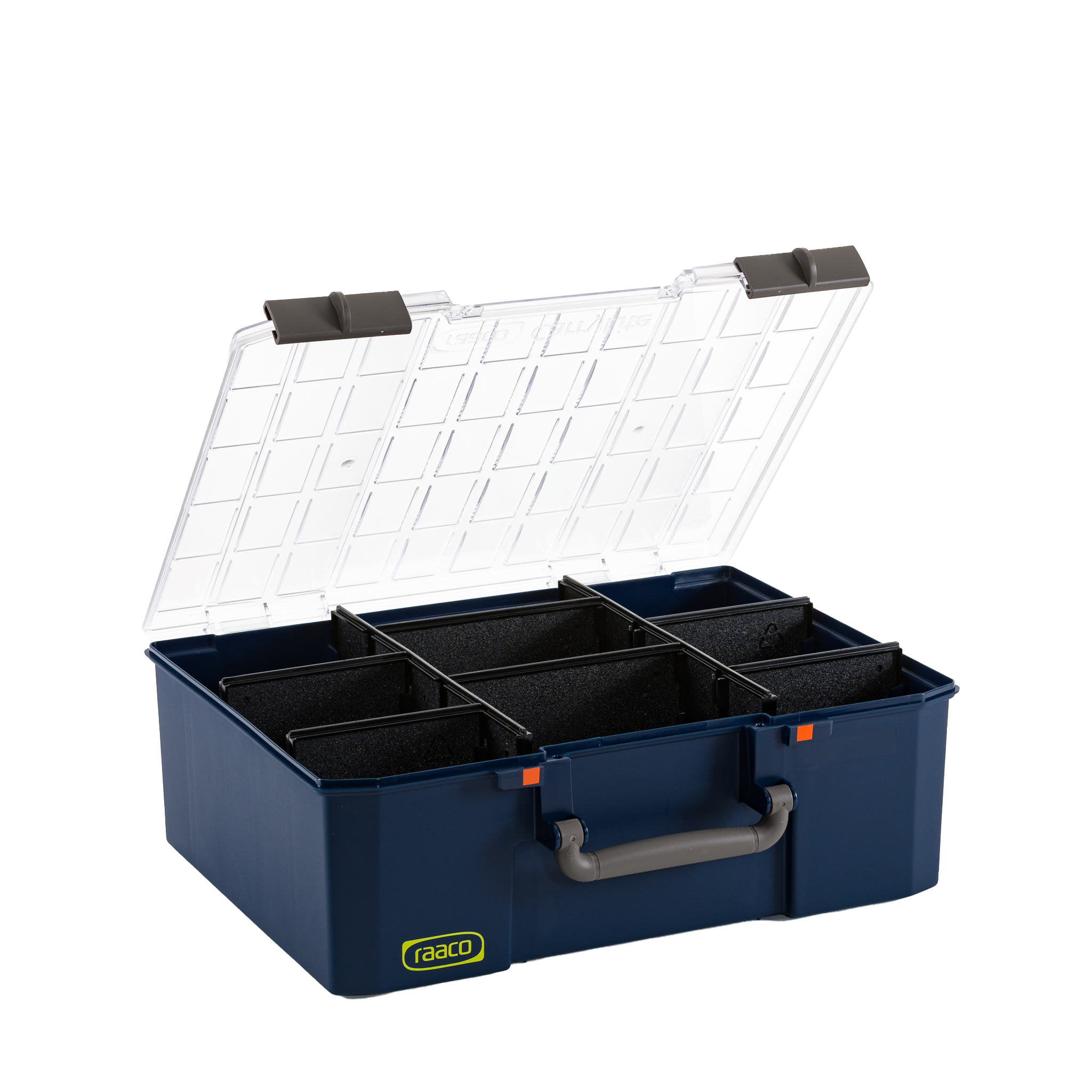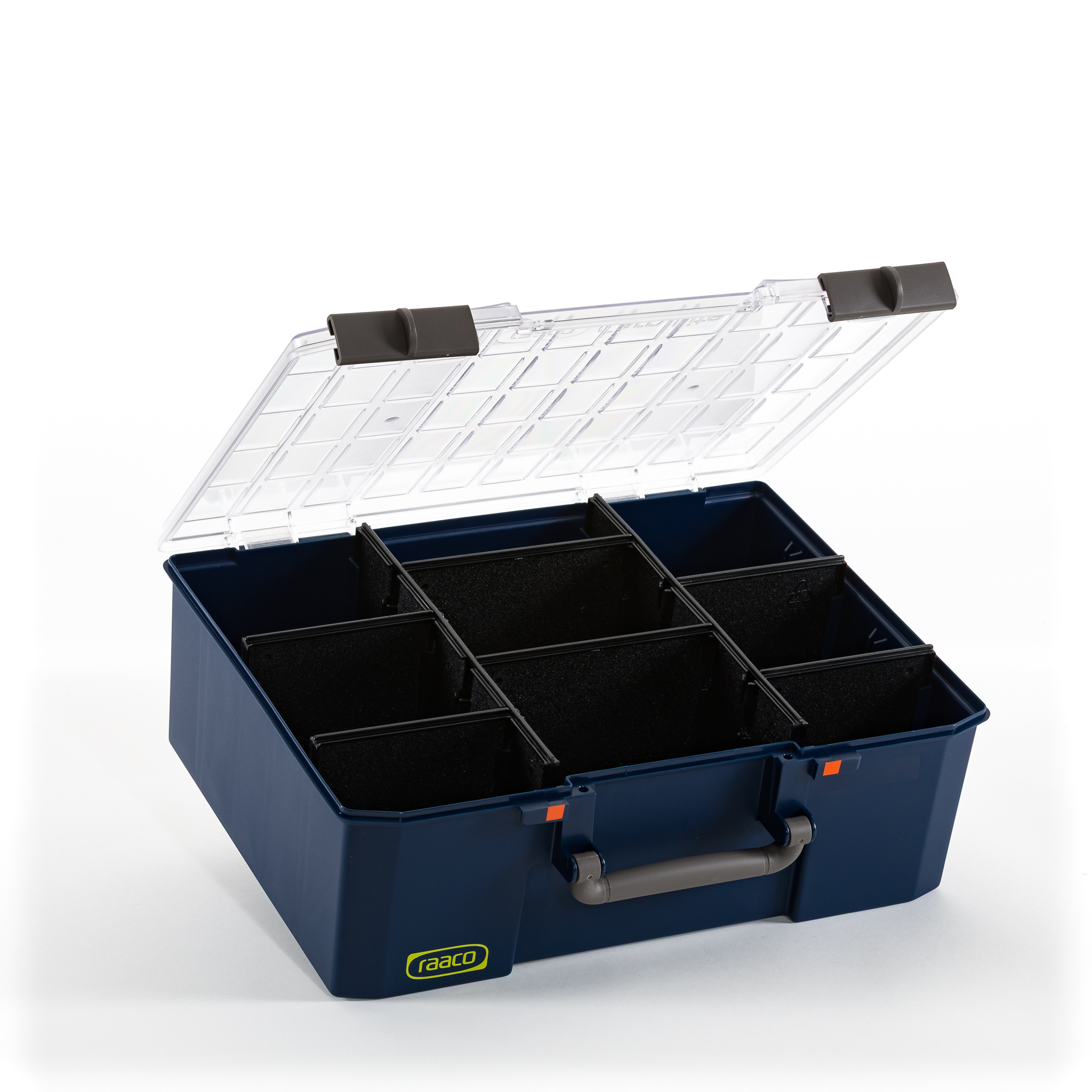6. CarryLite 150, avec une hauteur supplémentaire. Vendue avec des séparateurs amovibles de trois dimensions différentes. Possibilité de séparer la mallette en 9 espaces.