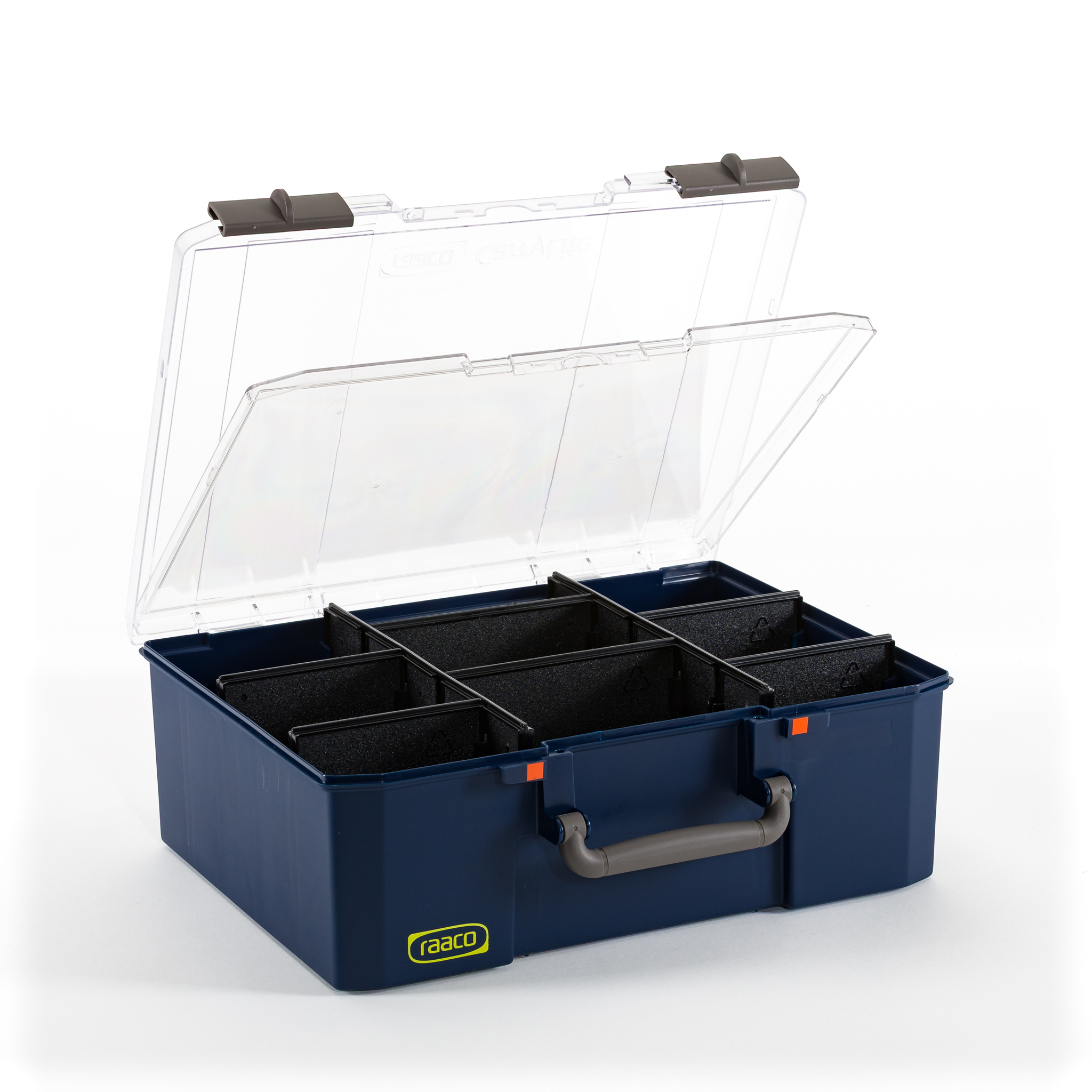 6. CarryLite 150, avec une hauteur supplémentaire. Vendue avec des séparateurs amovibles de trois dimensions différentes. Possibilité de séparer la mallette en 9 espaces.