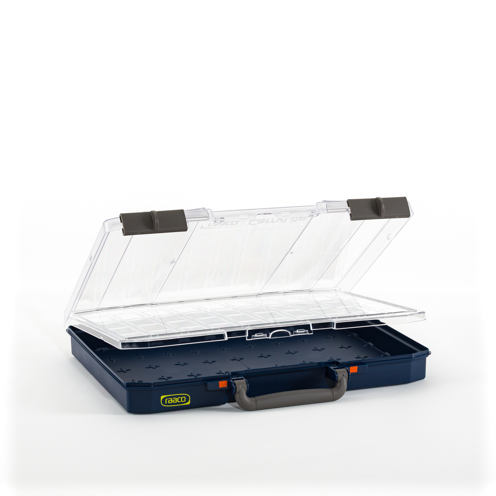 6. CarryLite 150, avec une hauteur supplémentaire. Vendue avec des séparateurs amovibles de trois dimensions différentes. Possibilité de séparer la mallette en 9 espaces.