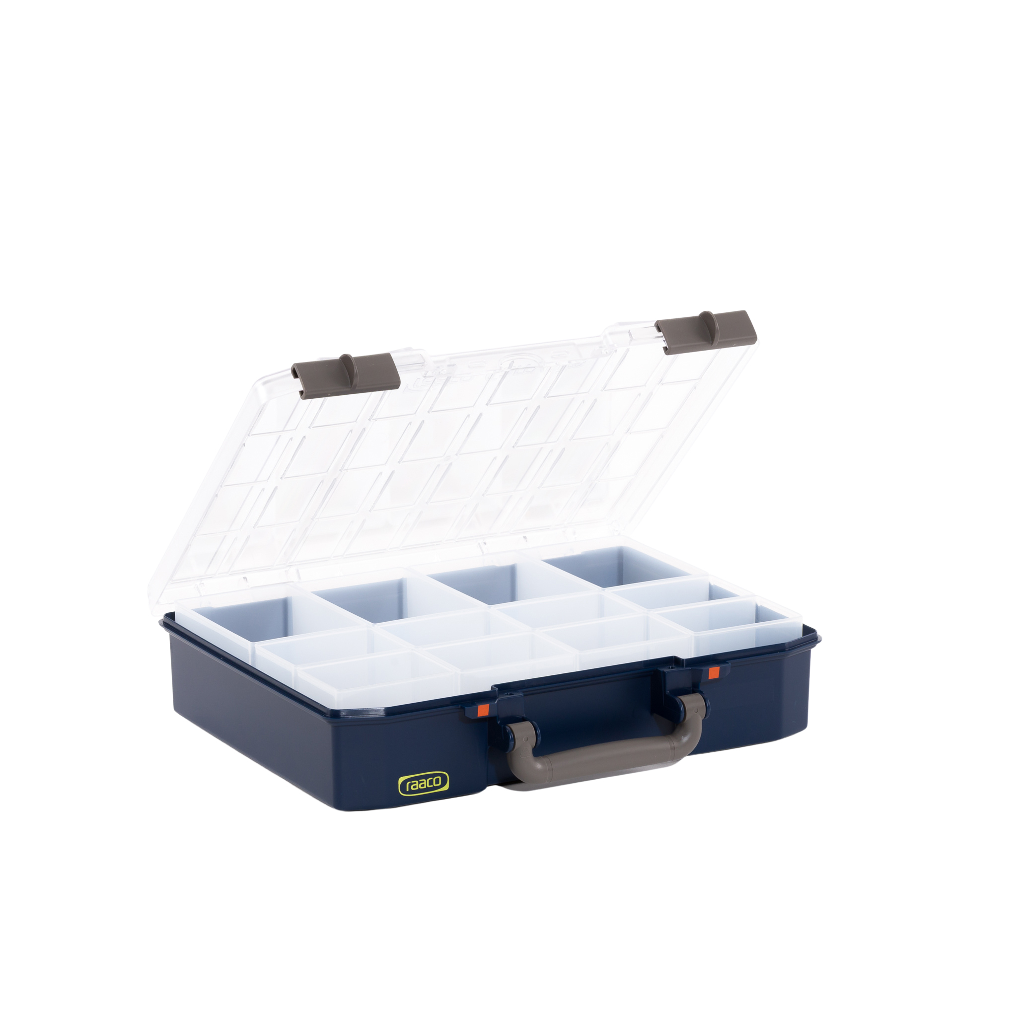 6. CarryLite 150, avec une hauteur supplémentaire. Vendue avec des séparateurs amovibles de trois dimensions différentes. Possibilité de séparer la mallette en 9 espaces.