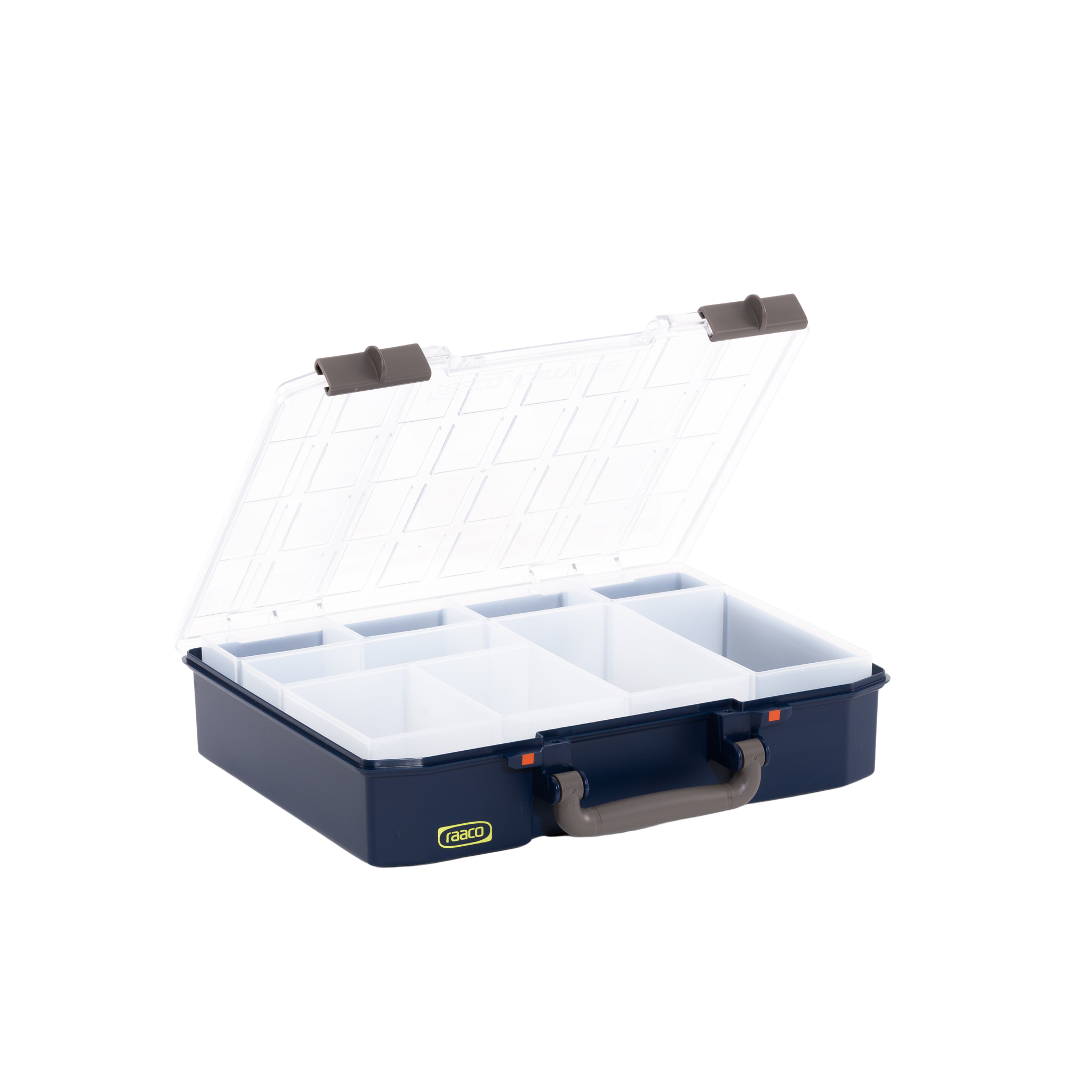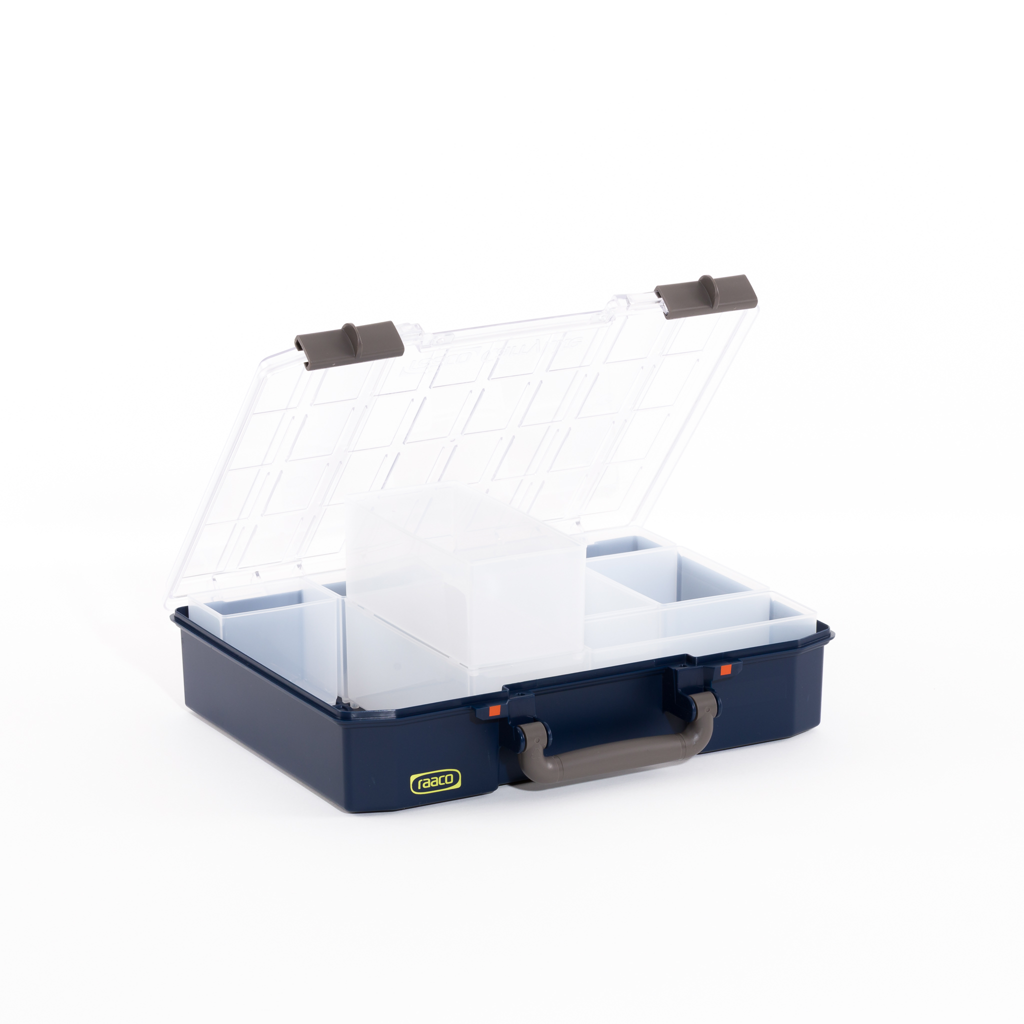 6. CarryLite 150, avec une hauteur supplémentaire. Vendue avec des séparateurs amovibles de trois dimensions différentes. Possibilité de séparer la mallette en 9 espaces.