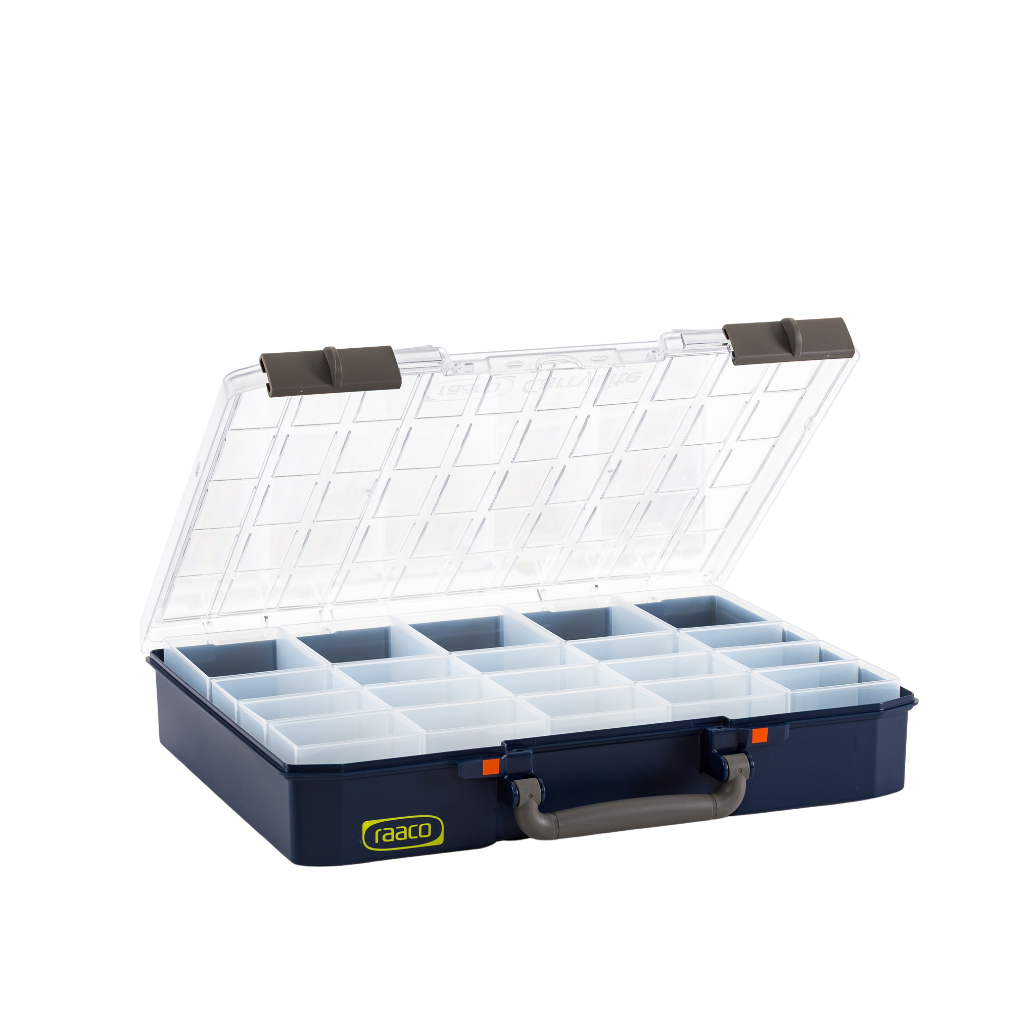 6. CarryLite 150, avec une hauteur supplémentaire. Vendue avec des séparateurs amovibles de trois dimensions différentes. Possibilité de séparer la mallette en 9 espaces.